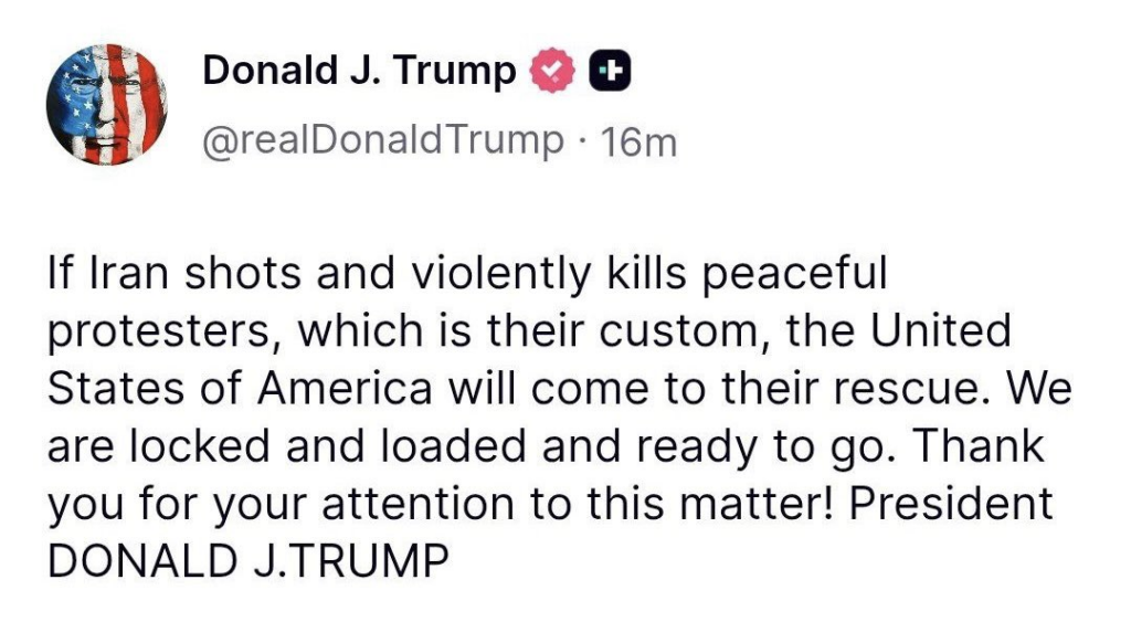 D’après les commentaires récents du président américain sur son réseau Truth Social, les Etats-Unis seraient prêts à intervenir si les répressions du gouvernement sur les manifestants deviennent plus violentes. L’Iran a mis en garde le président contre toute forme d’ingérence. Ali Larijani, secrétaire du Conseil suprême de sécurité nationale de l’Iran, a réagi aux menaces de Donald Trump et aux déclarations des autorités israéliennes sur son compte X.