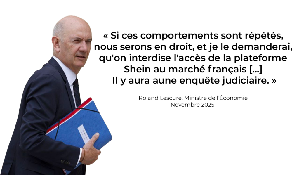Pour autant, la France se tire quelque peu une balle dans le pied quant aux dispositifs de contrôle des produits mais surtout d’alertes sur les produits illicites. Dans l’affaire des poupées pédopornographiques, c’est le magazine 60 millions de consommateurs qui avait alerté la DGCCRF (Direction générale de la concurrence, de la consommation et de la répression des fraudes). Le magazine édité par l’Institut national de la consommation (INC) est menacé de liquidation en raison de potentielles coupures budgétaires introduites dans le projet de de finances 2026. Les associations de consommateurs et de citoyens se mobilisent ce mercredi 7 janvier en soutien au magazine et à son éditeur, louant leur travail de défense des consommateurs et la publication d’informations issues d’études comparatives de produits comme avec Shein.